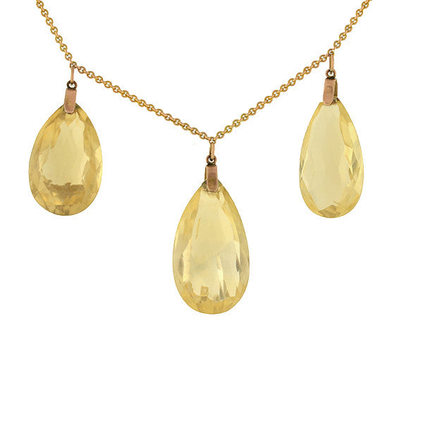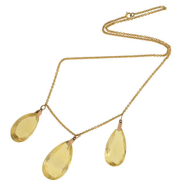 Late Victorian 14kt Teardrop Citrine Briolette Trio Necklace