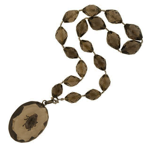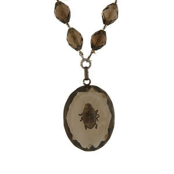 Victorian Carved Smoky Topaz Beetle Pendant Necklace