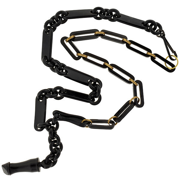 Victorian Jet Watch Chain & Whistle Pendant