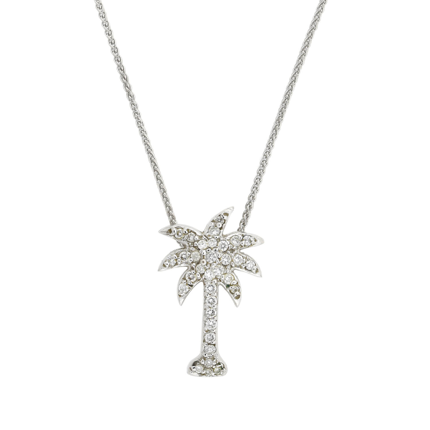 Estate 14kt Diamond Palm Tree Pendant Necklace