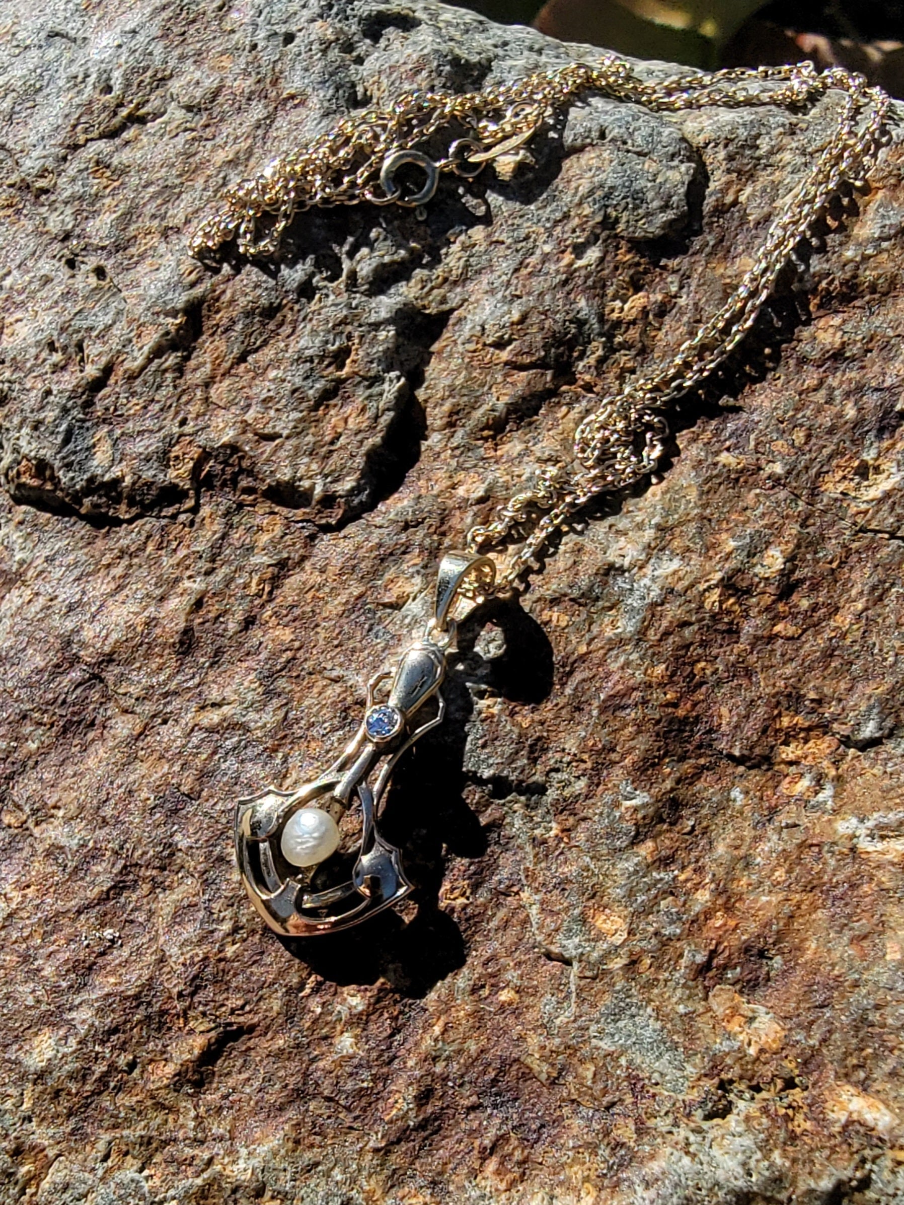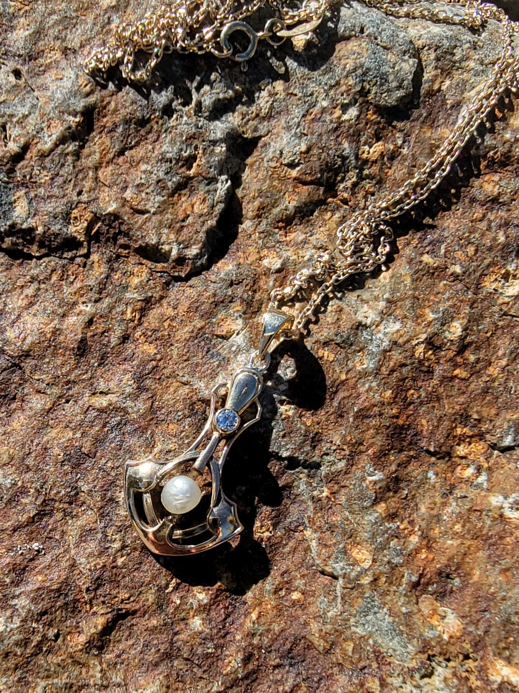14k gold pearl & diamond Deco necklace pendant lavaliere
