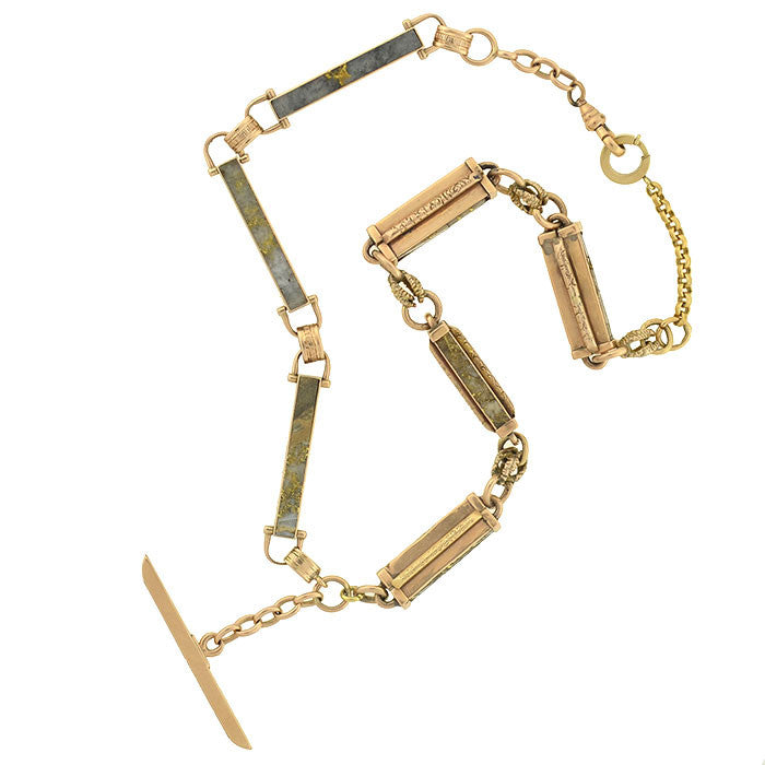Victorian 14kt Watch Chain w/ Gold Quartz Inlay