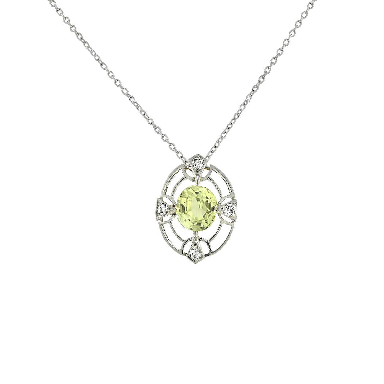 Edwardian Platinum/14kt Chrysoberyl + Diamond Pendant Necklace