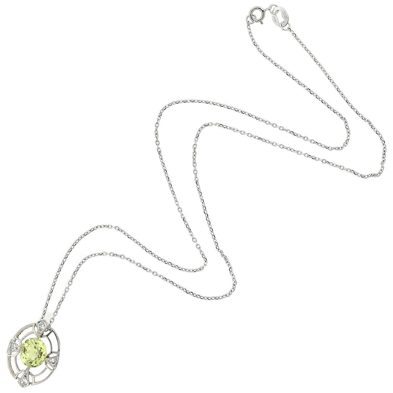 Condition:?The pendant necklace is in overall excellent condition. Besides normal surface wear, there is no apparent damage to the platinum and 14kt setting.?The chrysoberyl and diamonds are all intact and securely set. The chain and its spring-ring are secure and in good working condition.