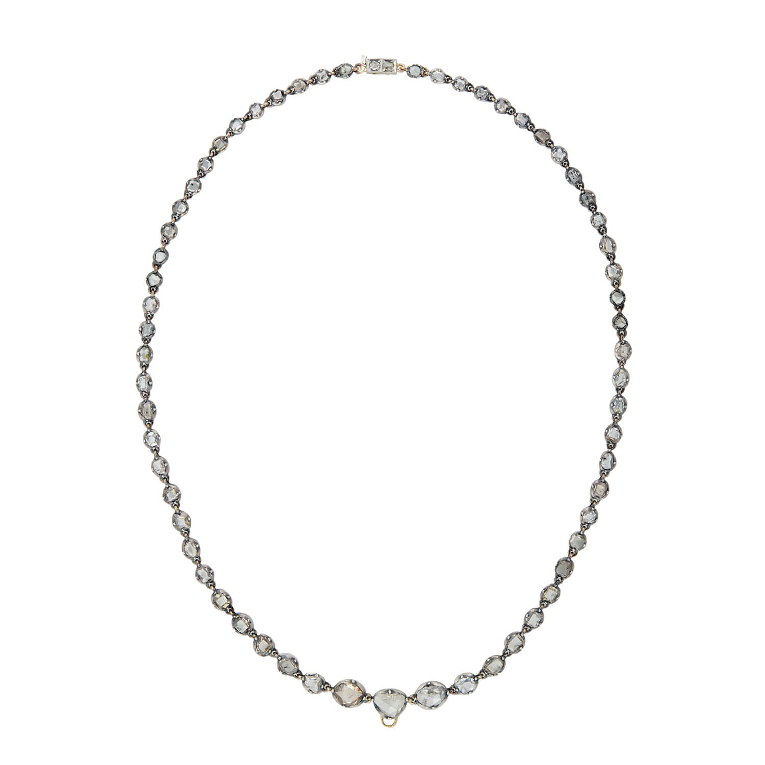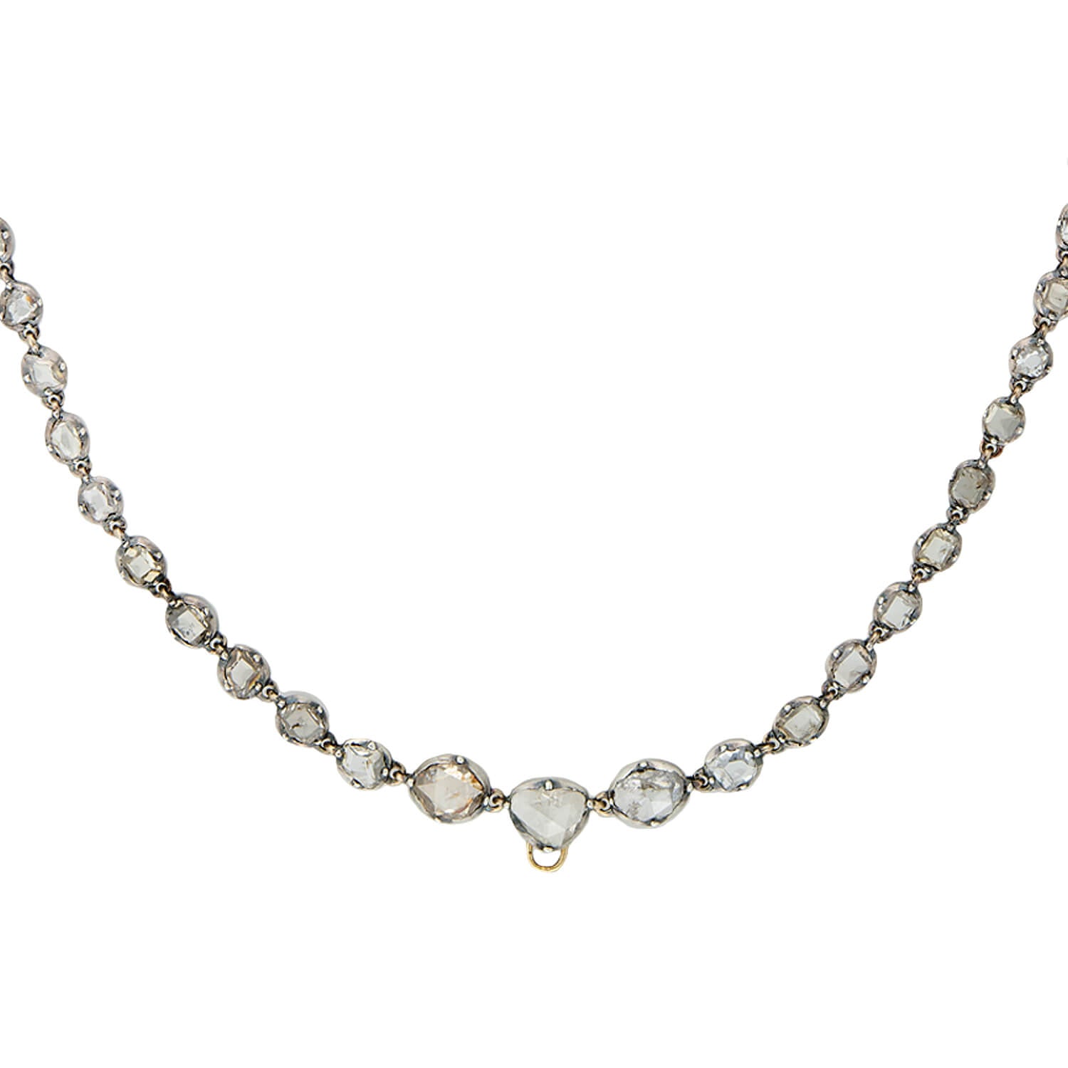 Georgian 15kt/Sterling Rose Cut + Table Cut Diamond Riviera Necklace 5ctw