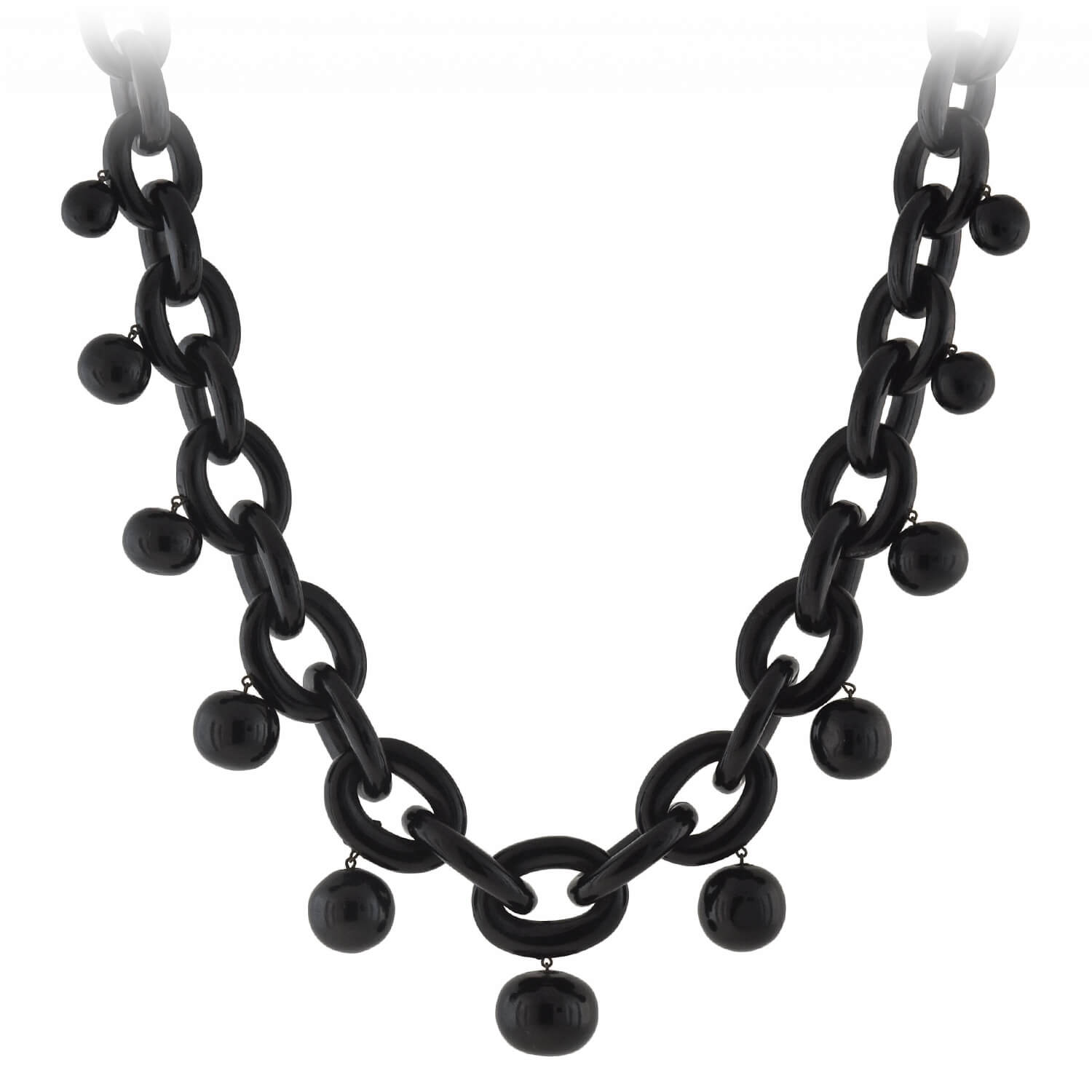 Victorian Jet Large Interlocking Link + Ball Festoon Adjustable Necklace 16+