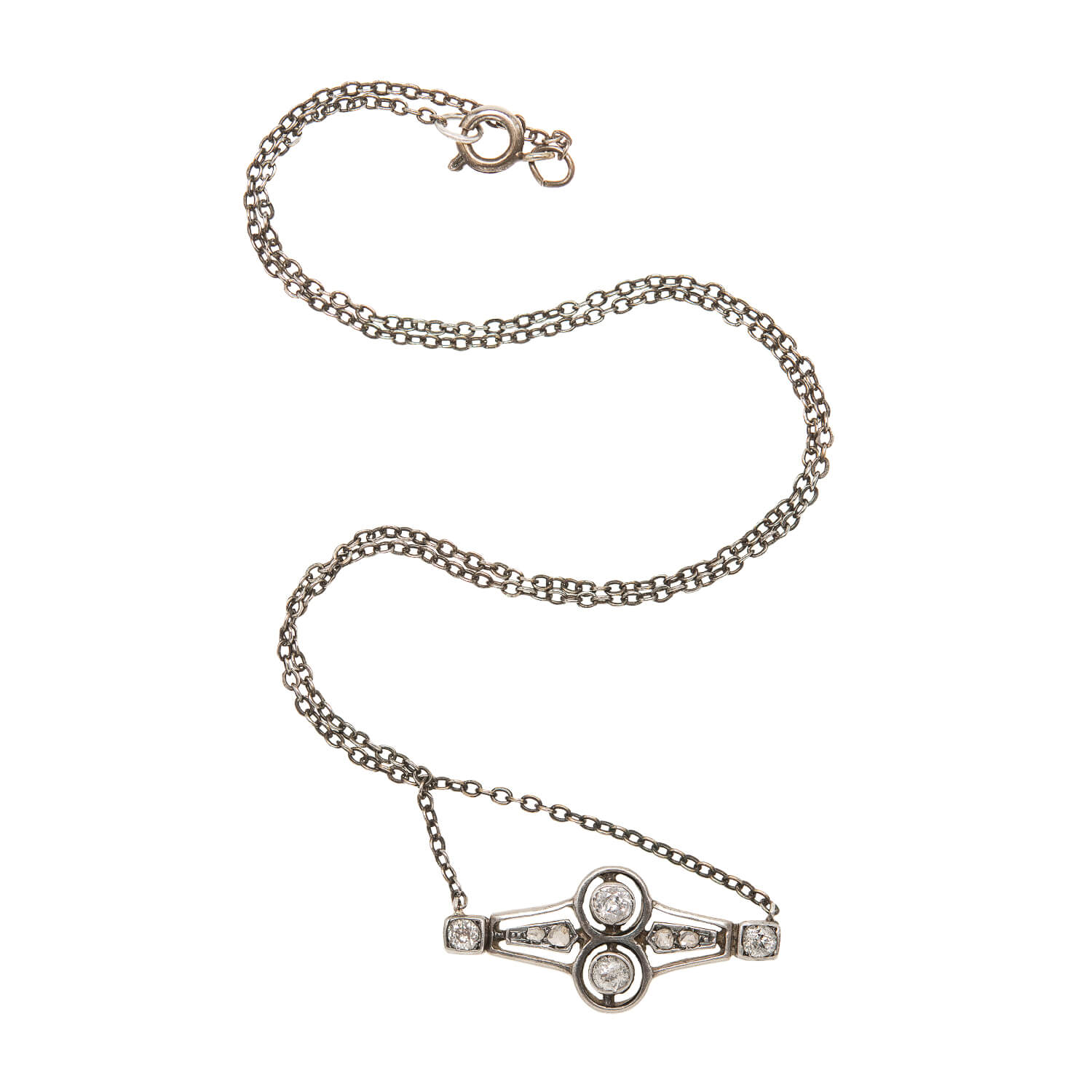 Condition: The overall condition of the pendant necklace is excellent. Besides normal surface wear, there is no apparent damage to the gold and silver setting and all of the diamonds are intact. The chain and clasp are secure and in good working condition.